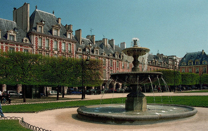 Place des Vosges, originally known as place Royale, was built by King Henri IV from 1605 to 1612.